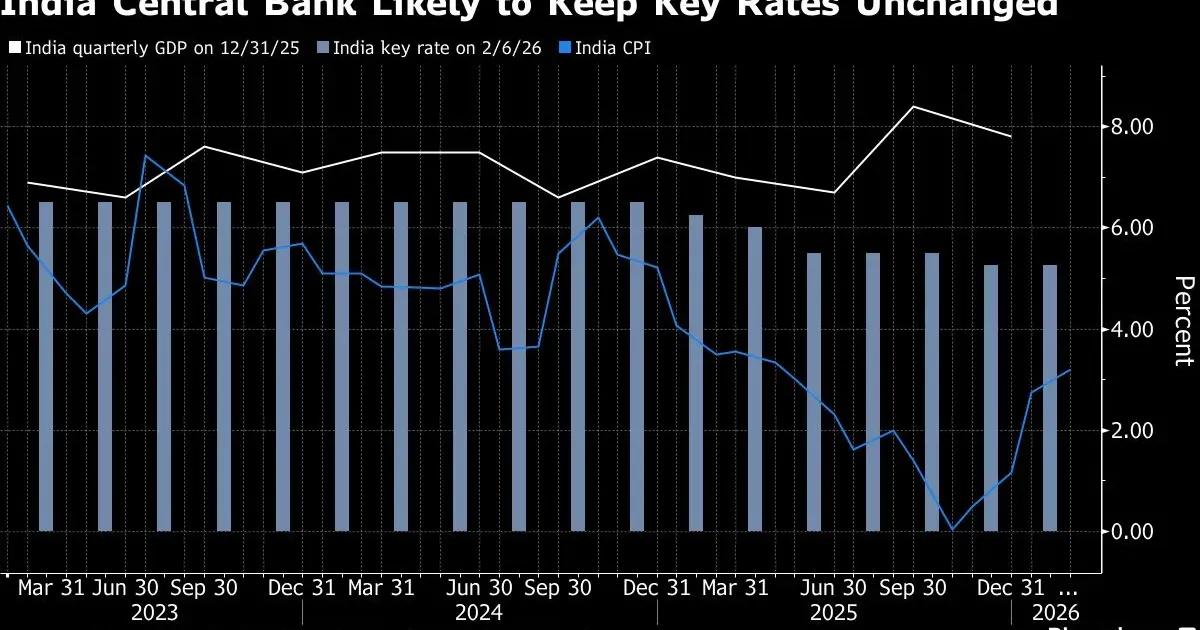The Reserve Bank of India is likely to hold interest rates on Wednesday in its first policy decision since the Iran war, according to a recent Bloomberg Economics briefing.